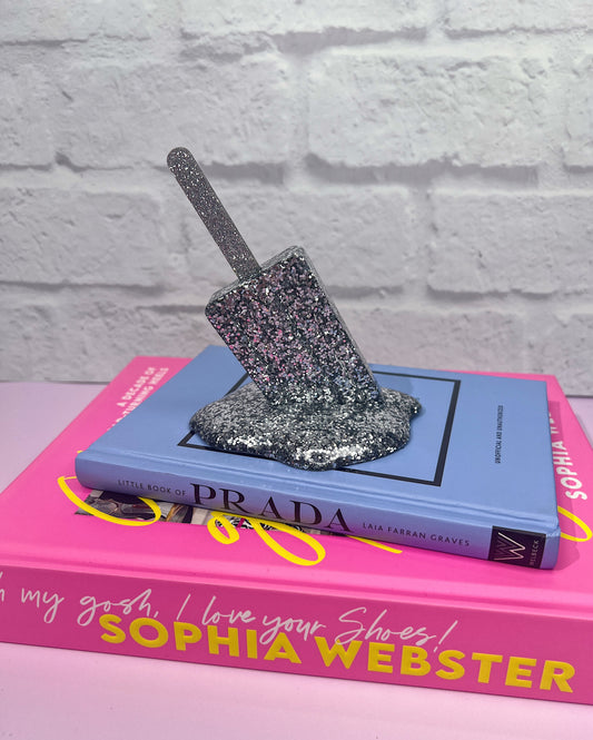 Melting Ice Pop Sculpture Silver Glitter